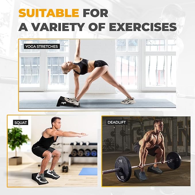 - LARGER FOOT SPACE: Our squat wedge for weight lifting with surface sizes up to 13 9/16 x 7 inches is suitable for most adult foot sizes and offers more comfort and provides more foot space