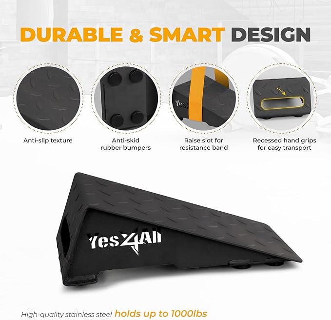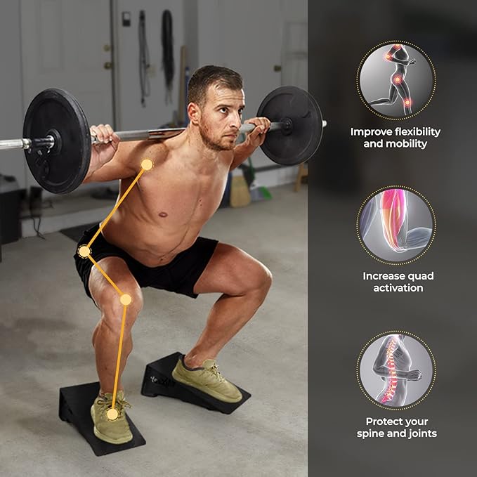 - TAKE YOUR TRAINING TO THE NEXT LEVEL: The slant board for squats improves your training posture and strength for full squats; It also has a resistance band raise slot for additional exercise options, allowing you to achieve your desired workout results
