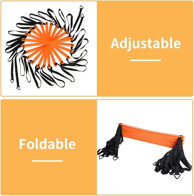 • Easy Adjustable 12 Ladder Rungs Not Tangled : This speed and agility ladder is designed with high-quality plastic and straps.The 12 rungs are adjustable to allow for different drills and exercises.Meanwhile,the exercise ladder have been assembled prior and gets tangled not easily