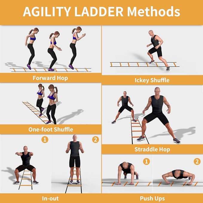 - Agility Ladder And Cones 20 Feet For Training: Ideal for beginners and professional athletes, this agility ladder is a must-have for improving speed, endurance, agility, coordination, quickness and overall athletic performance