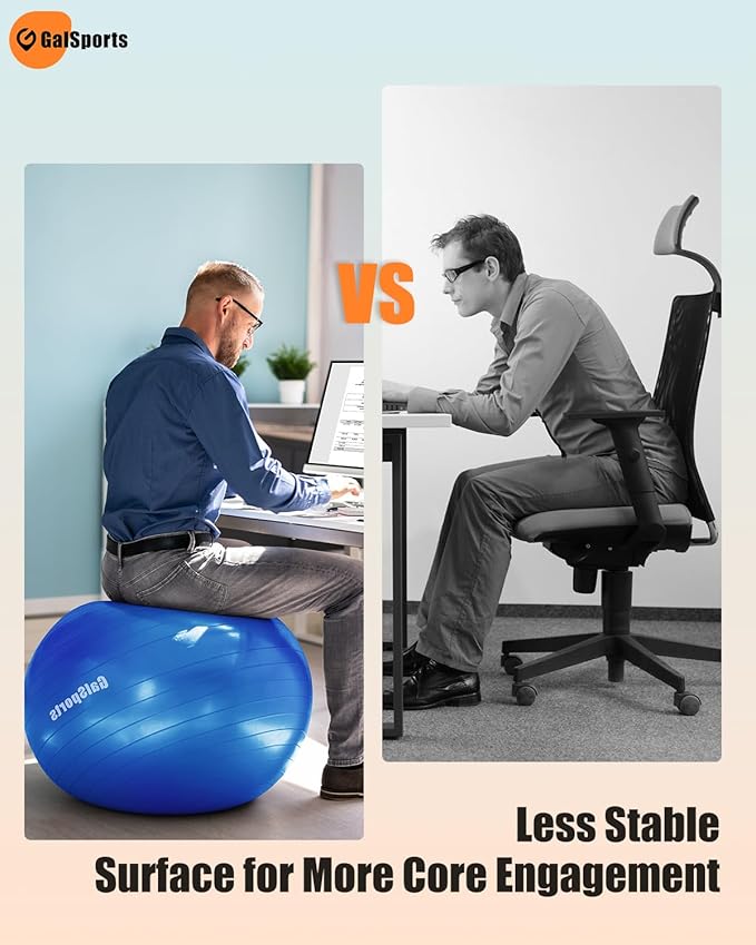 - 【1 Ball, Multiple Uses】The Galsports stability ball works wonders in relieving your lower back pain by strengthening your core and back. Use it to also work other various parts of your body, enjoy heavenly pre/post-workout stretches, and improve your posture with ease!