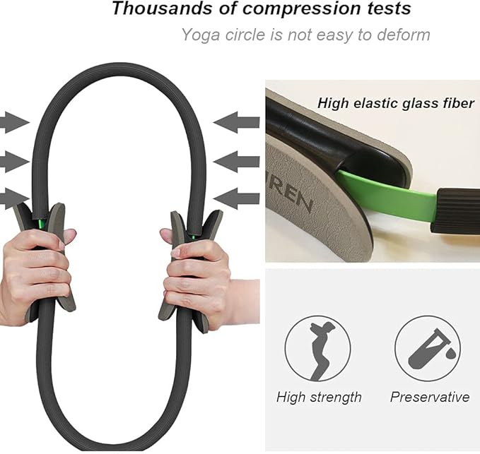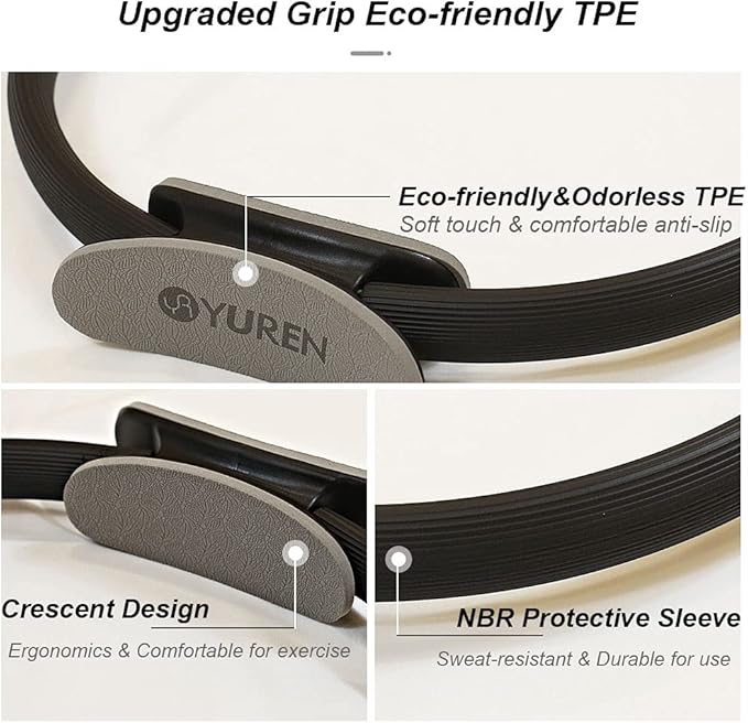 - Superior Design - YUREN pilates ring made of NBR foam and glass fiber and TPE material with features comfortable, hardness, oxidation resistance and good resistance, the fitness ring will always maintain its shape and reform back into a circle even after strenuous exercise